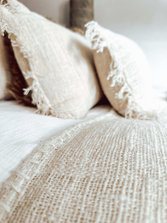 Leinen Decke mit Raffia Fransen 130 x 190 cm