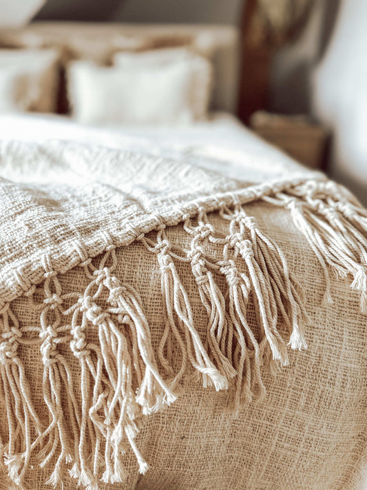 Leinen Decke mit geflochtenen Makramee Fransen 130 x 190 cm