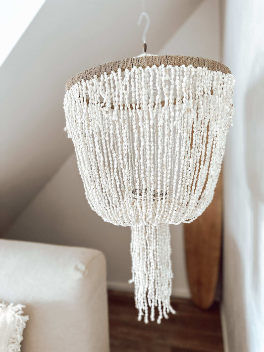 Dekorativer Muschel-Hänger – Große Muscheln & Kaurischnecken mit Holzperlen