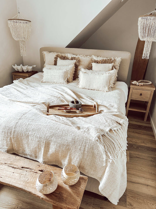 Leinen Decke mit Makramee Fransen 130 x 190 cm