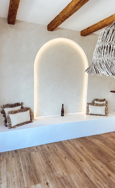 Das Ergebnis: eine Vinothek, die nicht nur optisch begeistert, sondern Atmosphäre schafft. Ein Raum, der einlädt zu bleiben, der modern wirkt, ohne kühl zu sein, und der das Lebensgefühl von Paso a Paso aufgreift: minimalistisch, natürlich, entspannt.