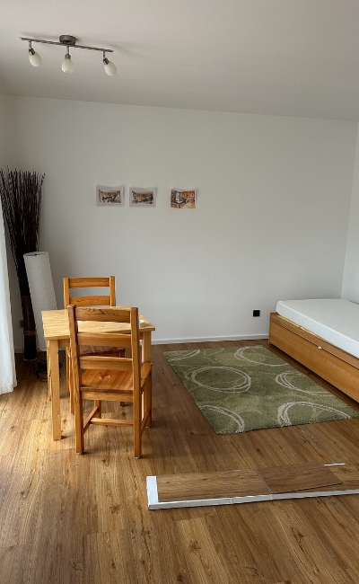 Die Veränderung begann an den Wänden. Ein neuer Anstrich in warmen Naturtönen bildet jetzt die Basis. Dazu haben wir Dekorbalken eingesetzt, die dem Raum sofort Tiefe geben und eine handwerkliche, fast mediterrane Anmutung schaffen. Diese Kombination aus klarer Struktur und natürlicher Haptik zieht sich durch das gesamte Projekt.
